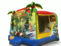 Featuring a large interior jumping area and a basketball hoop for group interaction, and high-visibility mesh allows spectators to keep an eye on participants. The C4 combo comes with a climb to conquer with a fun and fast slide, entertainment for even the most active child!