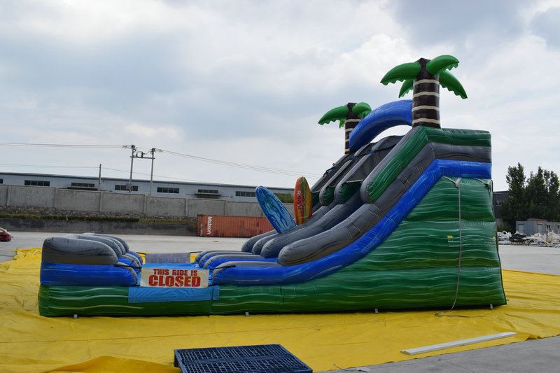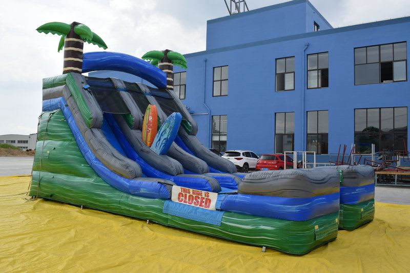 This absolute ripper of a slide is a sight to see! Custom bright shiny marble vinyl and inflated palm trees make this slide stand out from a mile away. Double slides are our most popular units and great for larger parties and events. Tropicana is great for virtually all ages, loads of fun for kids aged over 3 right up to adults.