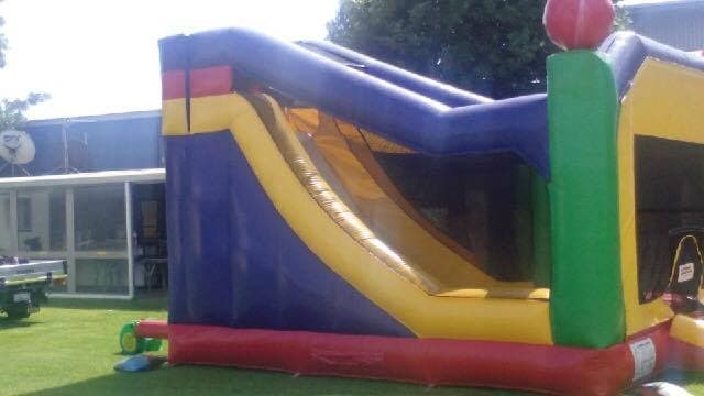 The 5 in 1 combo game is a great inflatable that incorporates climbing, sliding, bouncing and basketball all in one incredible play structure.