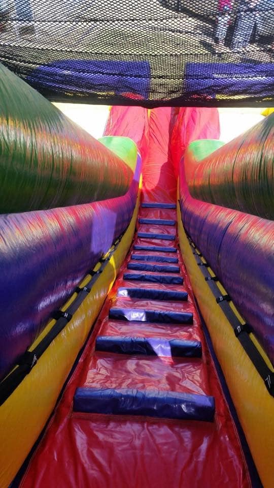 Massive double lane slide, so you go it alone or race your friends! Very popular with the sporting clubs and school events. Team it up with one of our Obstacle Courses and our Sports Interactive Inflatables to make the ultimate event. Contact Us