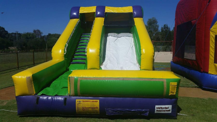 Lil Splash Medium Slide Lil Splash slide 6.7L x 4.3W x 3.7H (m) Suitable for ages: All ages Maximum players: 3 This wet/dry slide is just the thing for entertaining on hot summer days. Attach your slide to your garden tap and enjoy hours of fun. The top of the slide has a ‘No-Jump Top’ which forces riders to slide down the slide in the proper manner, making this the safest slide anywhere.