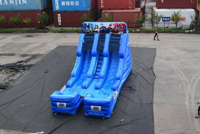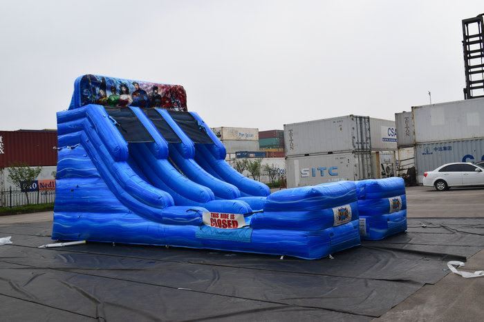 Check this inflatable out, This Awesome Justice League Waterslide will supply endless hours of fun, this ride will even add some competition between friends and family being a dual lane slide.