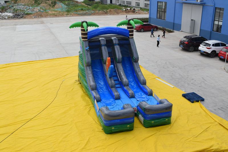 This absolute ripper of a slide is a sight to see! Custom bright shiny marble vinyl and inflated palm trees make this slide stand out from a mile away. Double slides are our most popular units and great for larger parties and events. Tropicana is great for virtually all ages, loads of fun for kids aged over 3 right up to adults.